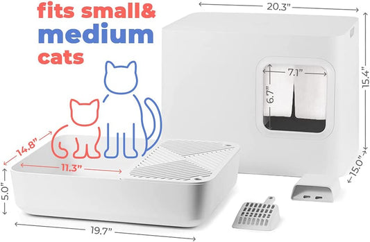 • Meowy Studio Loo Modern Cat Litter Box - All in One Cover Litter Filter Plate Scoop and Holder, Aspen White